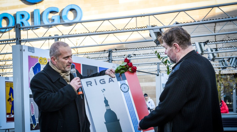Atzīmējot Latvijas valsts svētkus, 16. novembrī laukumā pie t/c “Origo” tika atklāta lielformāta brīvdabas izstāde “PUBLISKIE SPOGUĻI. Plakāti 1834–2017”. Latvijas simtgadei veltītajā izstādes atklāšanā pulcējās pazīstami mākslinieki, kā arī mākslas baudītāji un pilsētas viesi, novērtējot vairāk nekā 80 spilgtākos plakātu mākslinieku darbus. Apmeklētāji izstādes atklāšanas dienā varēja pirmie novērtēt plakātu izteiksmīgo valodu un vēstījumu, gūstot retrospektīvu ieskatu plakāta vēsturē Latvijā no 19. gs. sākuma līdz pat mūsdienām.