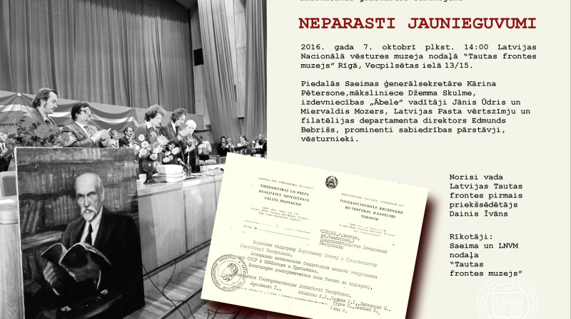 7. oktobrī Tautas frontes muzejs aicina uz sarīkojumu “Neparasti jaunieguvumi”