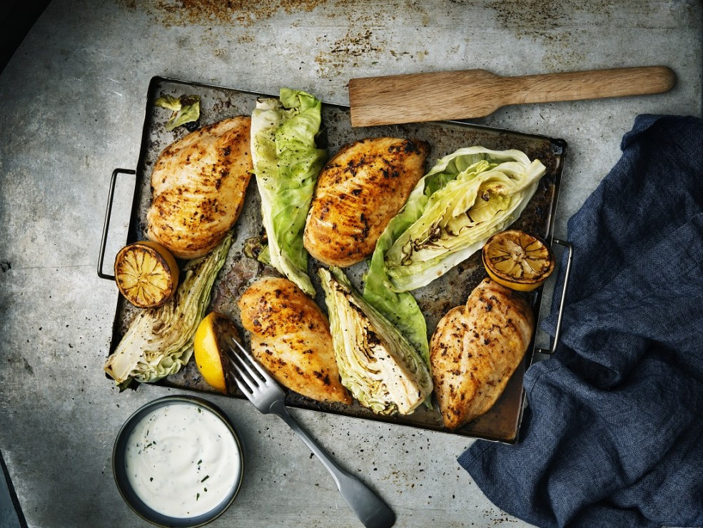 6. Vistu pasniedziet ar ceptajiem kāpostiem, mērci un citronu.